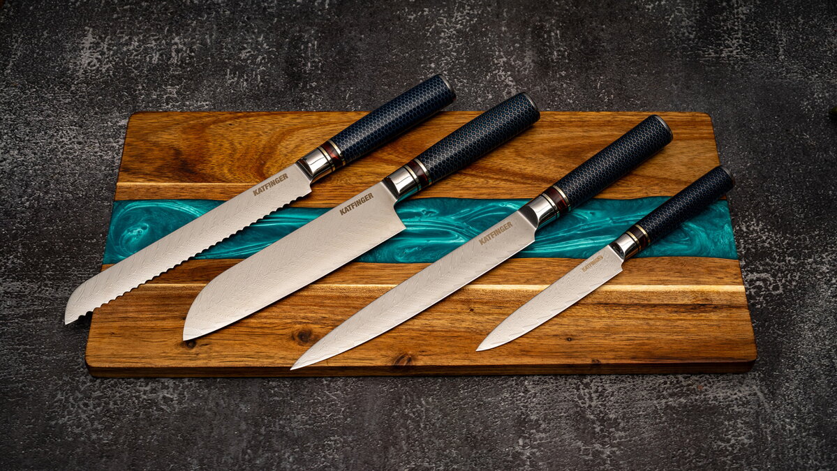 KATFINGER | Blue River | sada damaškových nožů 4ks + prkno | KFs312